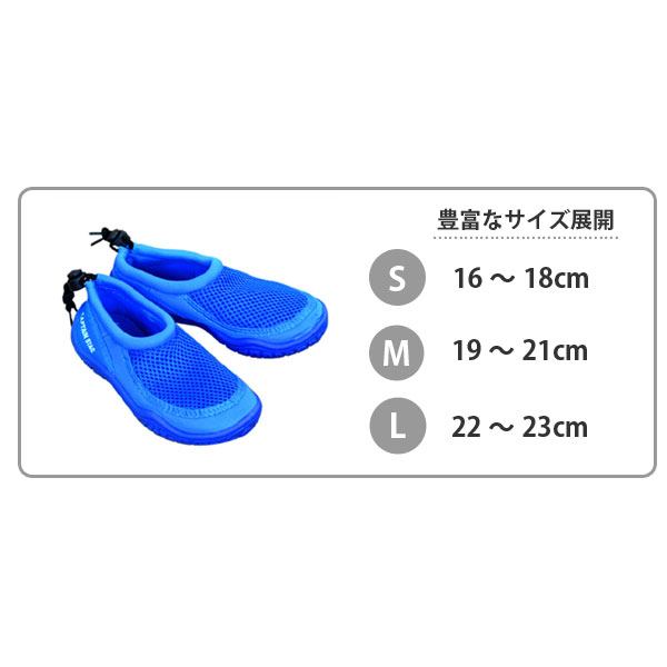 ●【S】16〜18cm【M】19〜21cm【L】22〜23cm思いっきり遊べる!海や川で、足をケガから守るマリンシューズです。